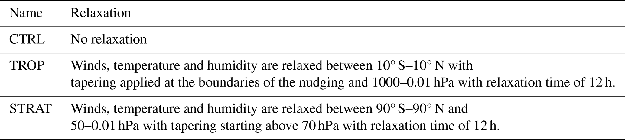 where , and and are calculated as the differences between the respective relaxation experiment (either TROP or STRAT) and CTRL. Note that if a part of the teleconnection signal is captured by CTRL, then Eq. (12) would underestimate the magnitude of the signal. More details on using Eq. (12) are given Sect. 3.4.